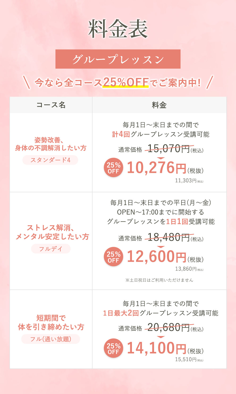 妊娠中はレッスンは受講できません。