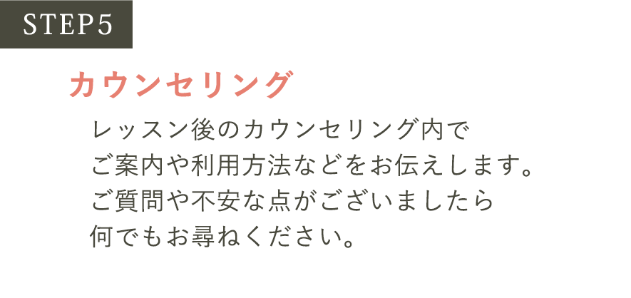 まずは体験レッスンをお試しいただき、その後のカウンセリングにて、入会手続きをおこなっていただけます。