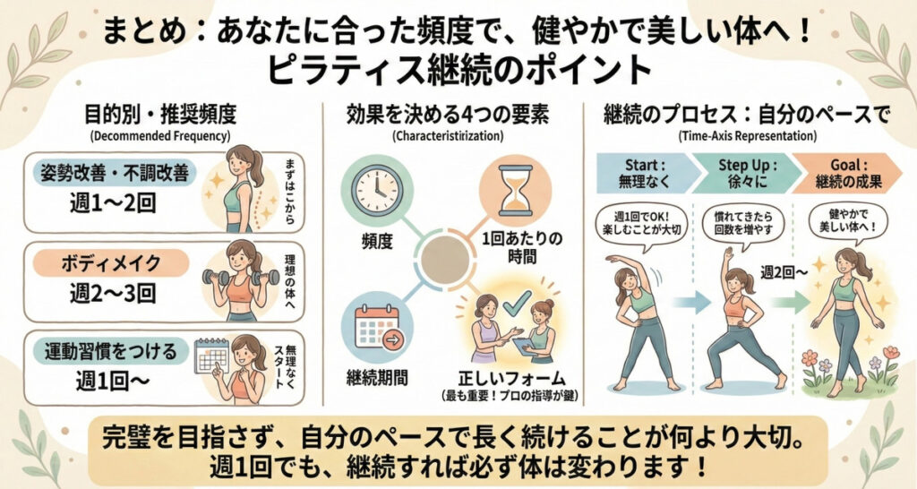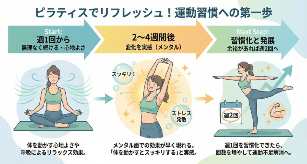 ピラティスの効果を最短で実感するには、自分の目的やライフスタイルに合った頻度を見つけることが何より大切です。