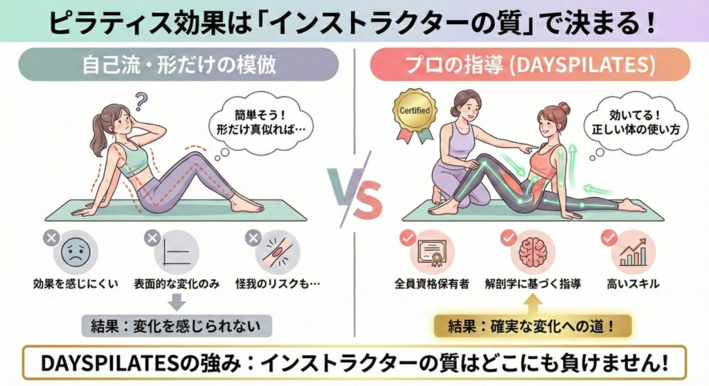 初心者が最も陥りがちなミスが、自己流でピラティスを始めてしまうことです。
