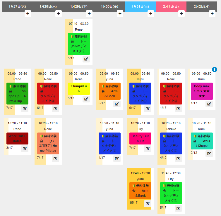 スタジオによっては、既存会員の人数が多すぎて予約が取れない場合があります。